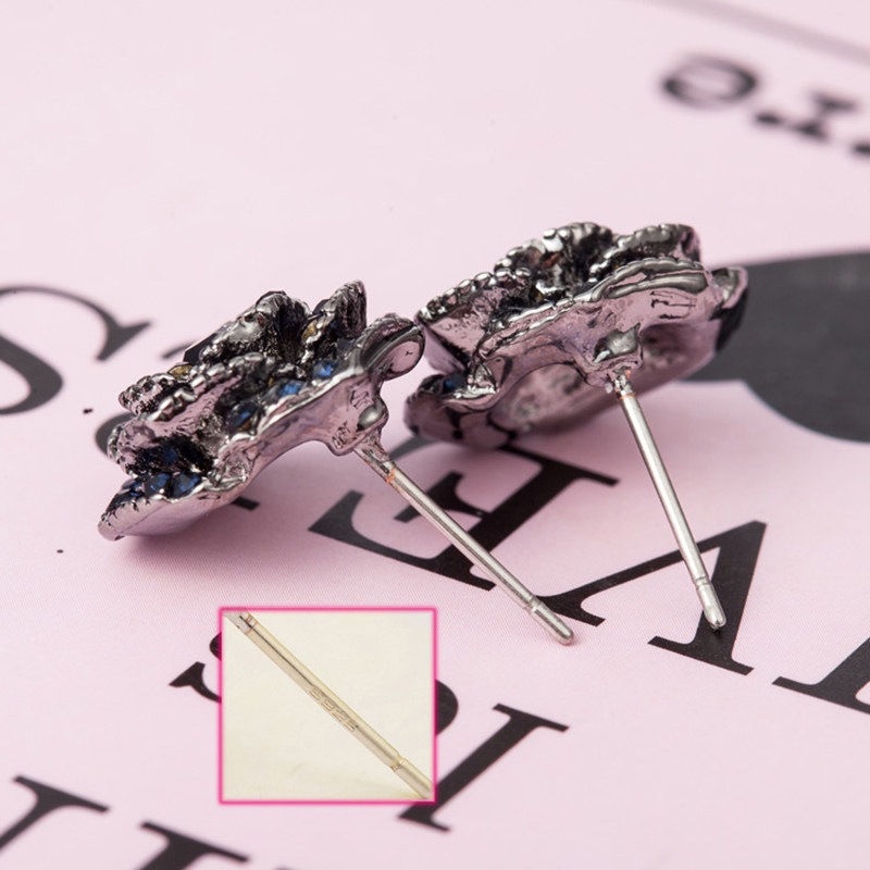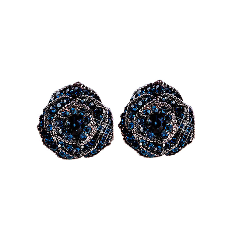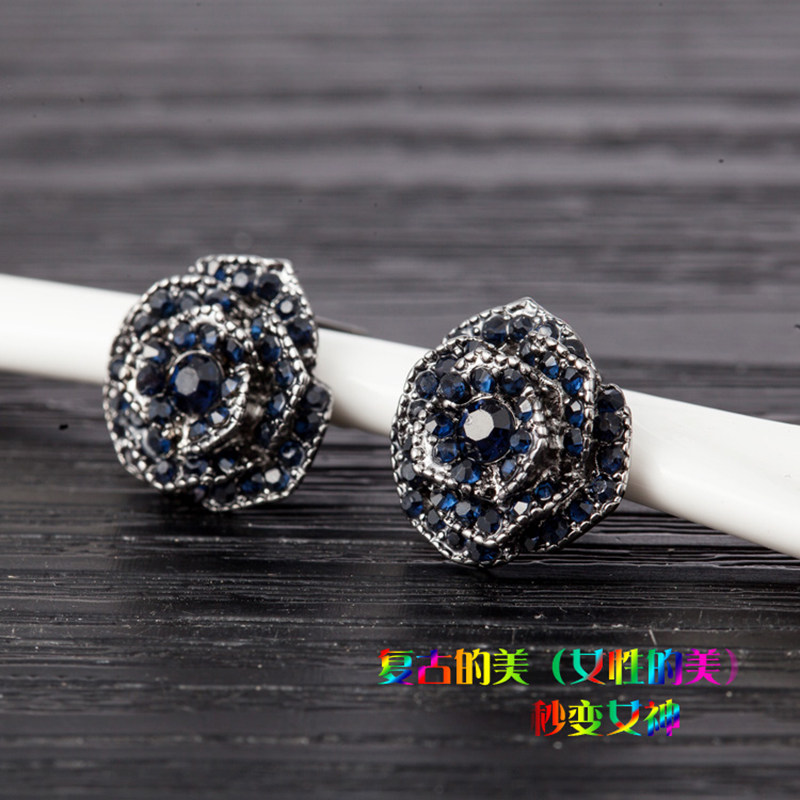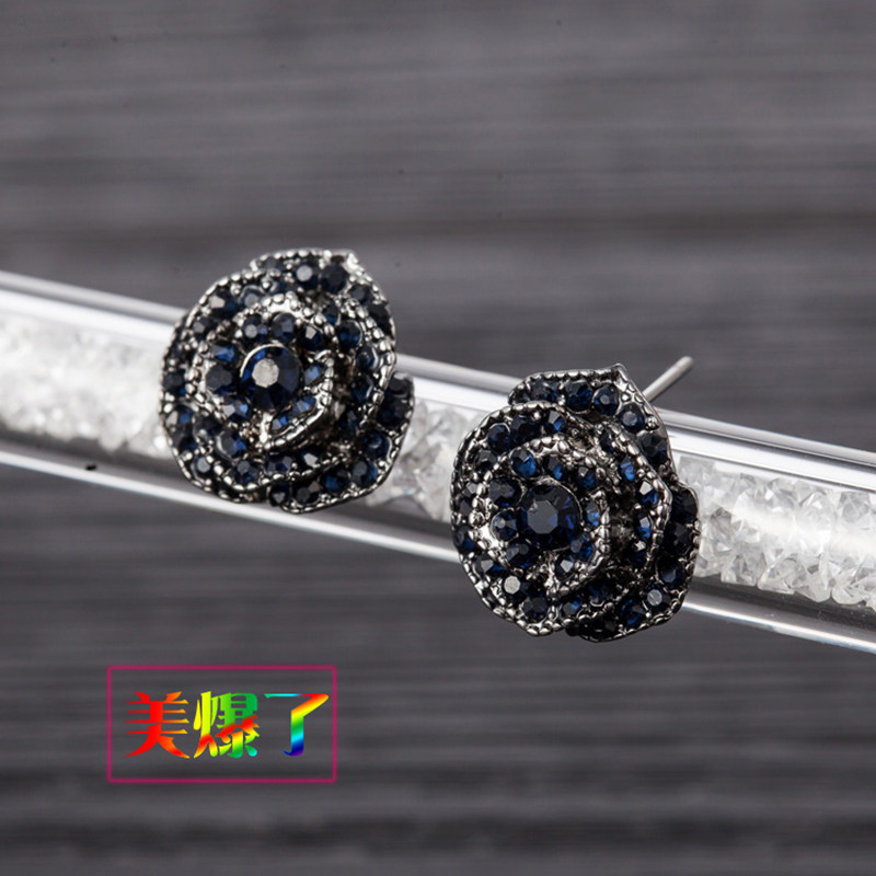 Blue Unique Ear Nail New 2023 Burst Ear Accessories Light Extravagant Advanced Sensation Retro Refined Full Drill Rose Earrings Woman-Taobao