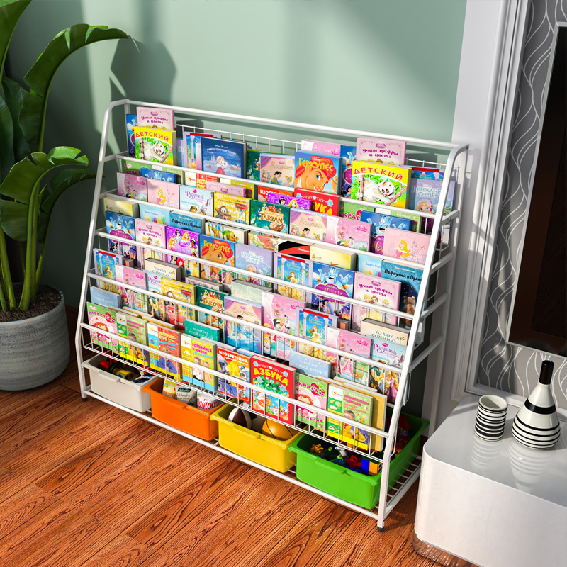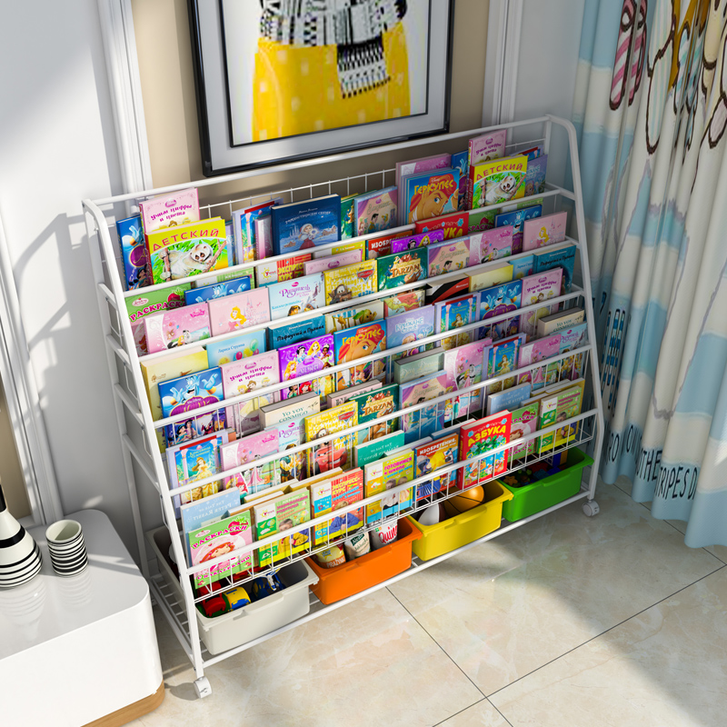 Mobile Bookshelves Shelve Iron Art Floor Student Bookcase Home Baby Plotbook Shelf Simple Children's Bookshelves
