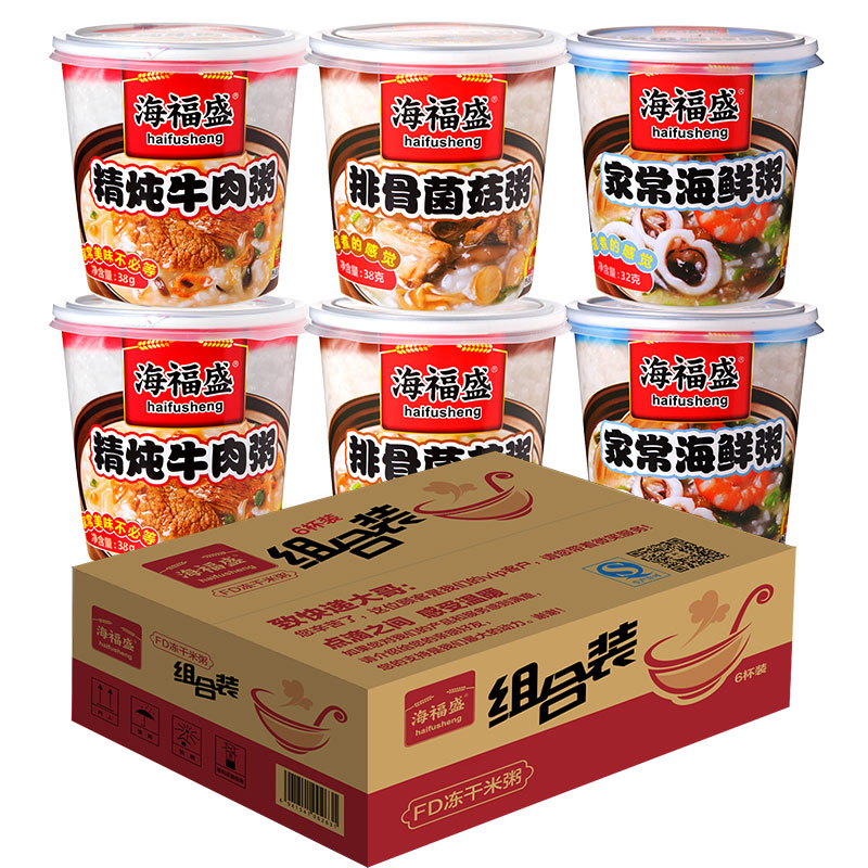 Haifusheng Freeze-dried Instant Porridge Preserved Egg Lean Meat Seafood Breakfast Food Combination Instant Breakfast Convenient Nutrition Substitute