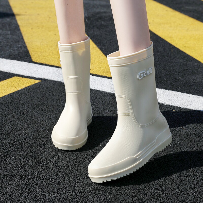 Fashion mid-tube rain boots women's rain boots plus cotton warm water shoes winter women's new waterproof non-slip rubber shoes low-top shoes