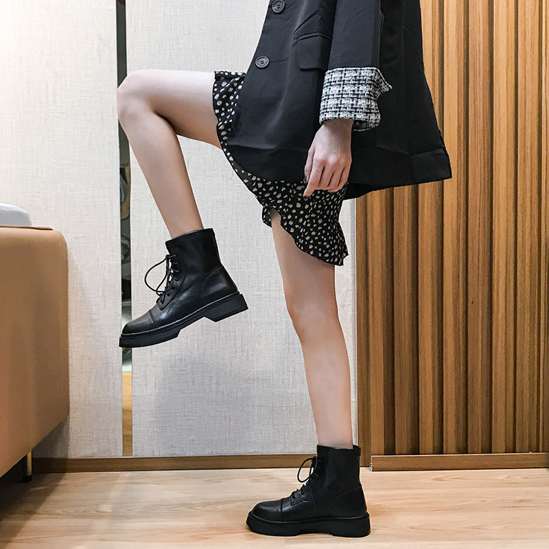 Martin Boots Woman Flat Bottom Spring Autumn Season Single Boots 2021 New slim 100 hitch short cylinder Chains locomotive boots sweet and cool