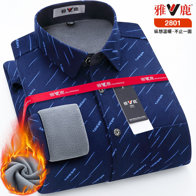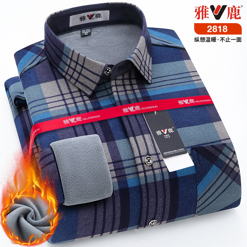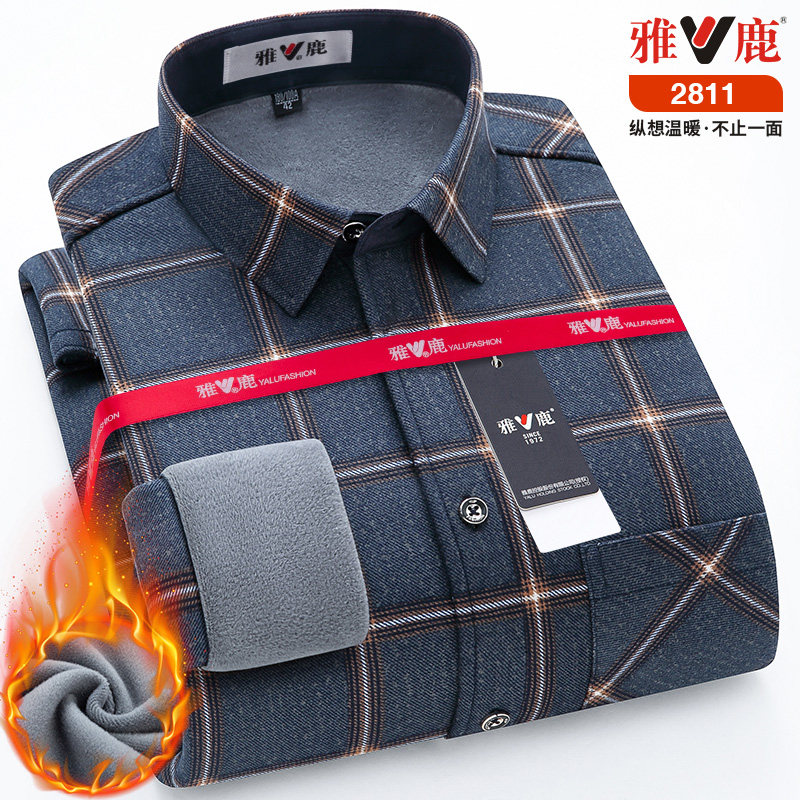Yose men's warm shirts Long sleeves Gardown thickened mid-aged plaid lining casual style Dad clothes autumn and winter