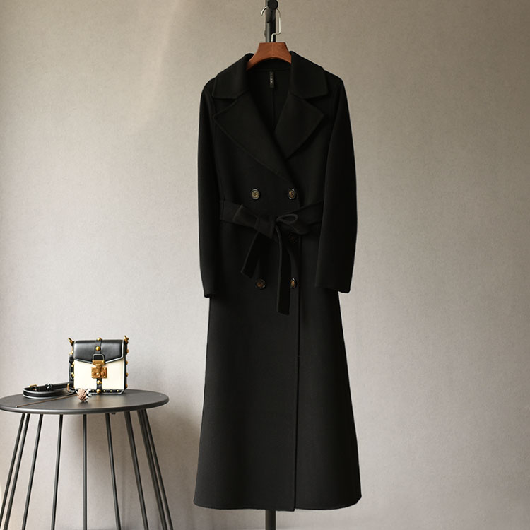 Autumn-winter break code clear warehouse French style belt wind clothes max with the same Hepburn Temperament Marriage Double-sided Fur Coats