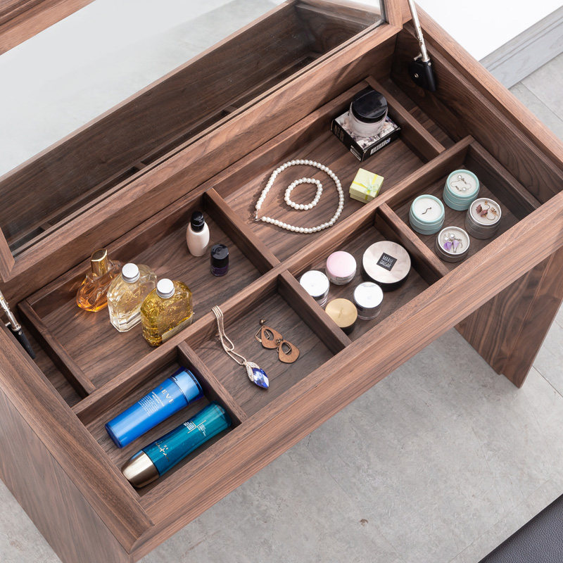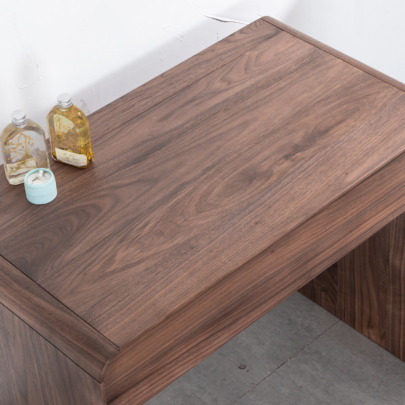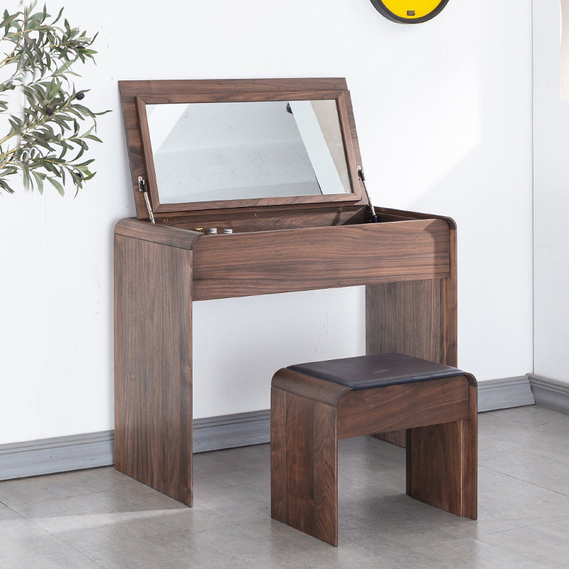 Black Hu Peach Wood Makeup Bench Solid Wood Makeup Table Nordic Small Family Type Bedroom Clamshell Makeup Desk Brief Log Wind