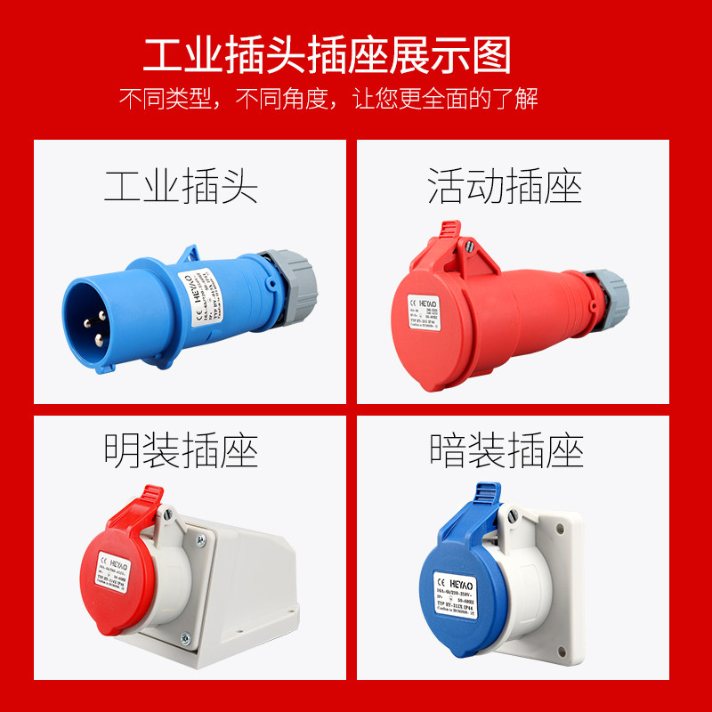 The third generation new IP44 waterproof industrial plug socket 3 cores 4 cores 5 holes 16A 32A connector explosion-proof suit