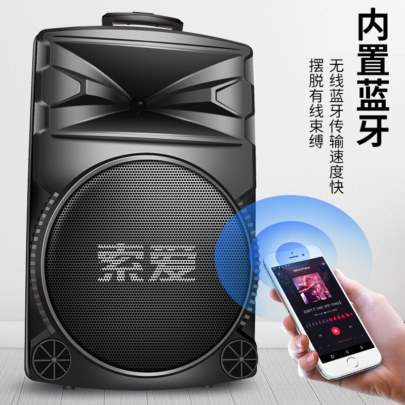 Mobile Outdoor Heavy Bass Square Dance Sound Wireless Bluetooth Pull Speaker Street Dance Rap Dual Microphone K Song