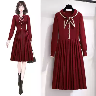 This year of life red women's fashion knitted skirt women's autumn and winter 2021 new style with coat inner match inner match dress