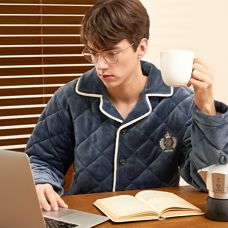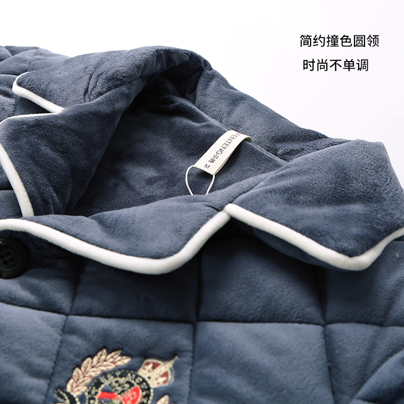 Fenten men's pajamas autumn and winter thickened three-layer padded jacket men's home clothes winter warm plus velvet coral velvet set