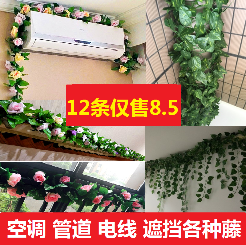 Decorative leaves of package drain pipe Air conditioning wire Gas sewer pipe occlusion beautification simulation fake green leaf rattan