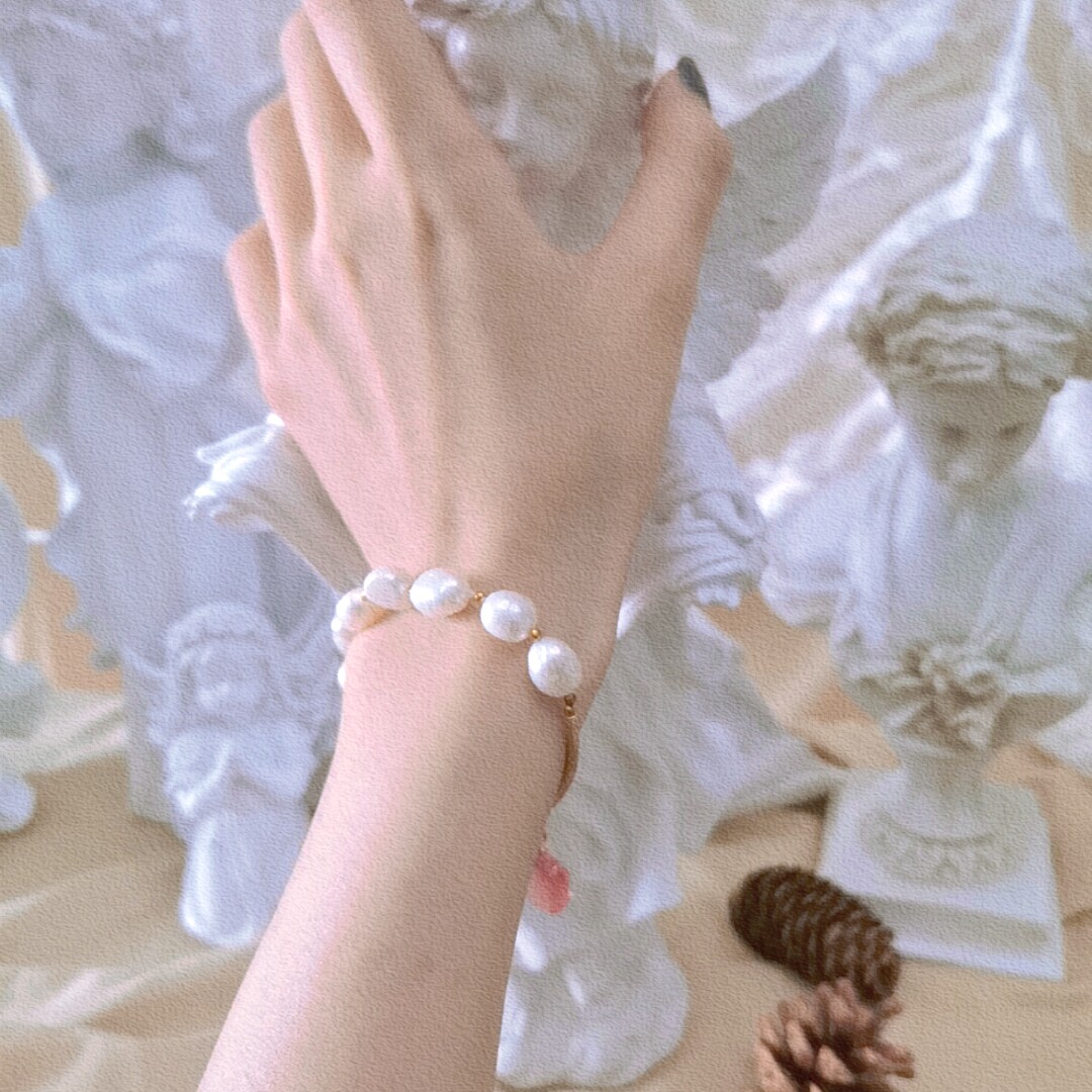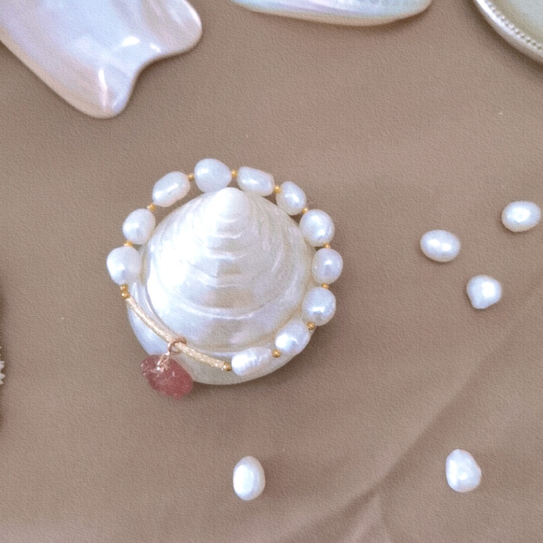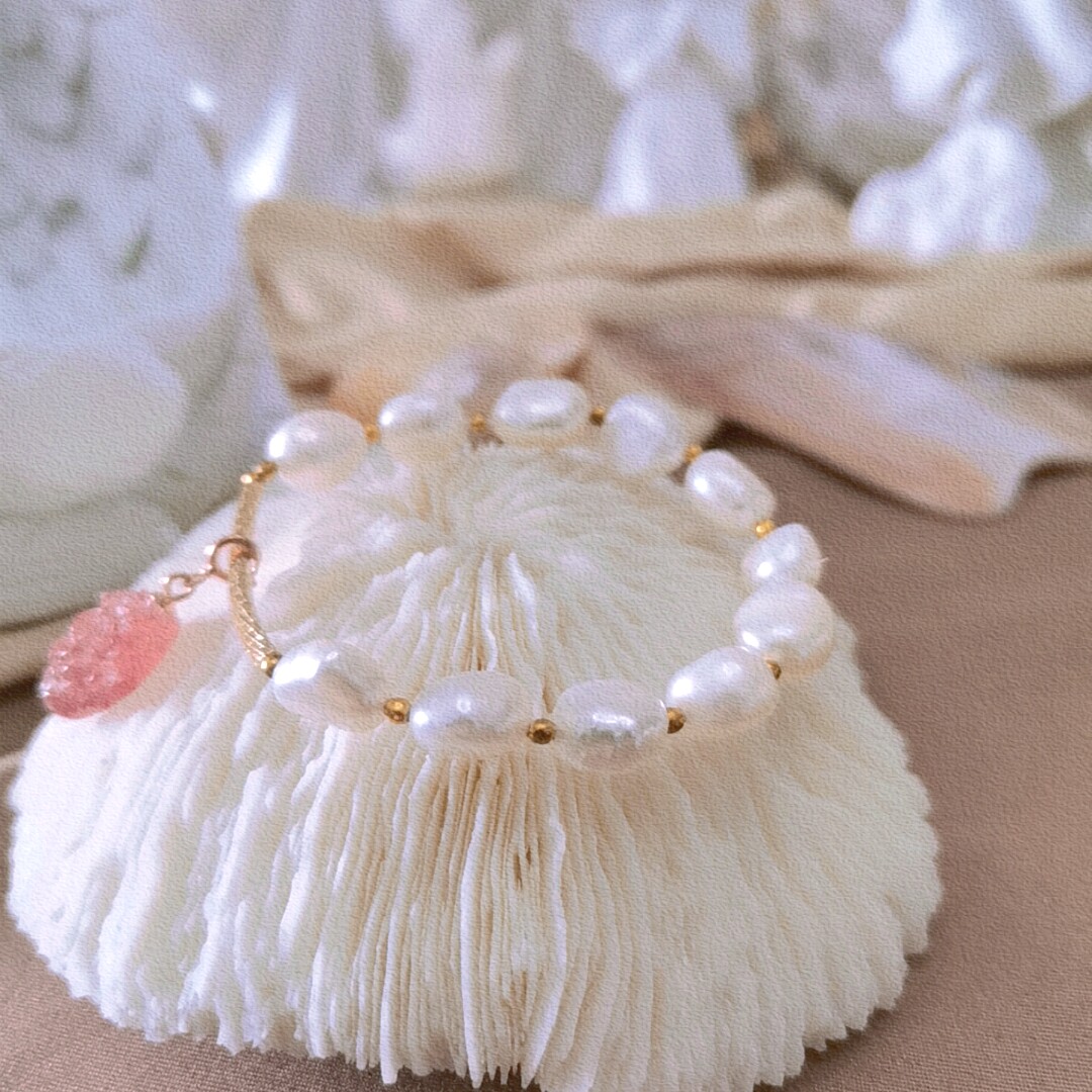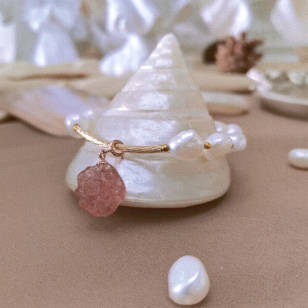 "Cherish the beauty"original niche design bracelet Natural pearl strawberry crystal transfer trick peach temperament bracelet