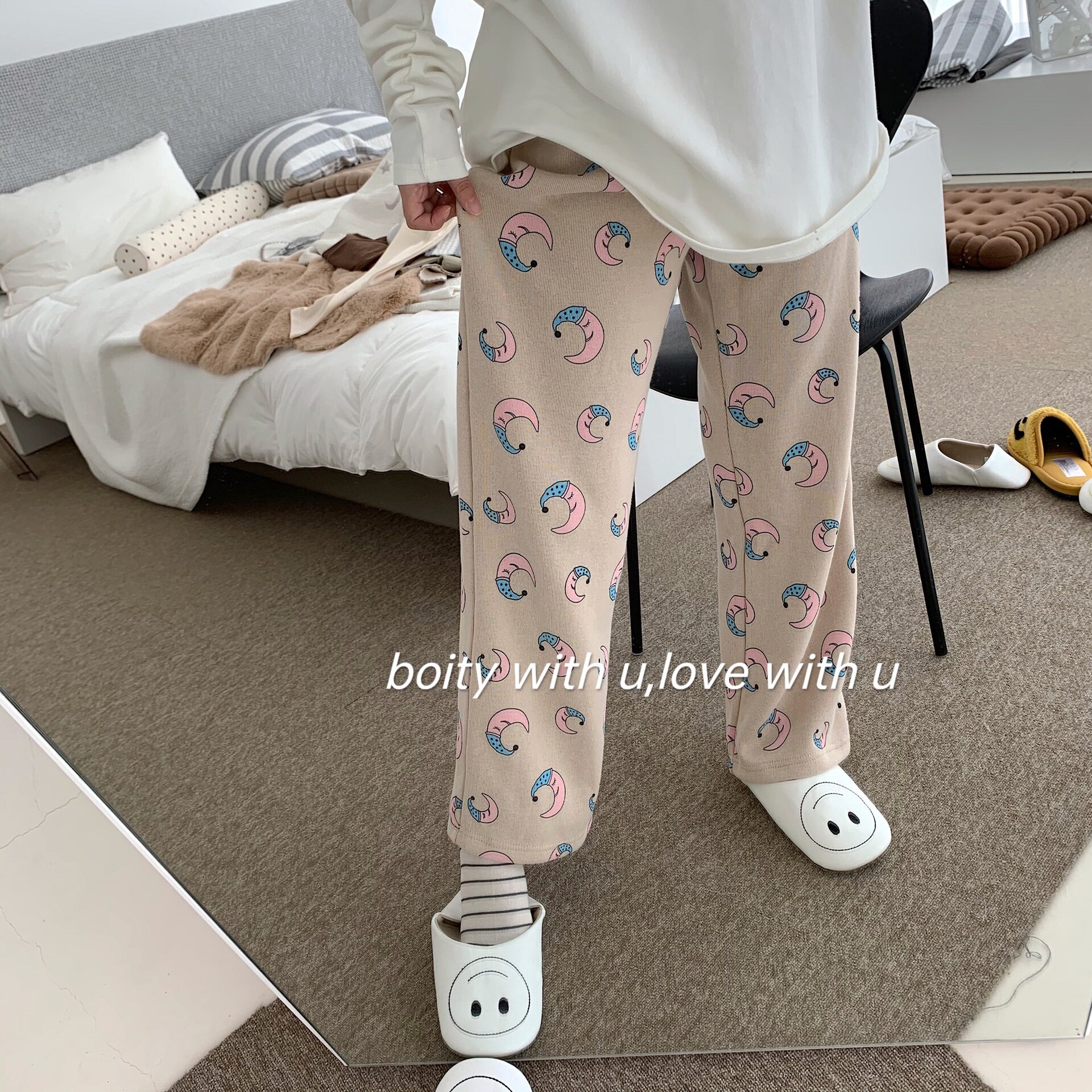 Autumn and winter thickened Korean ins moon star print knitted warm home pants casual pants women's pajamas velvet