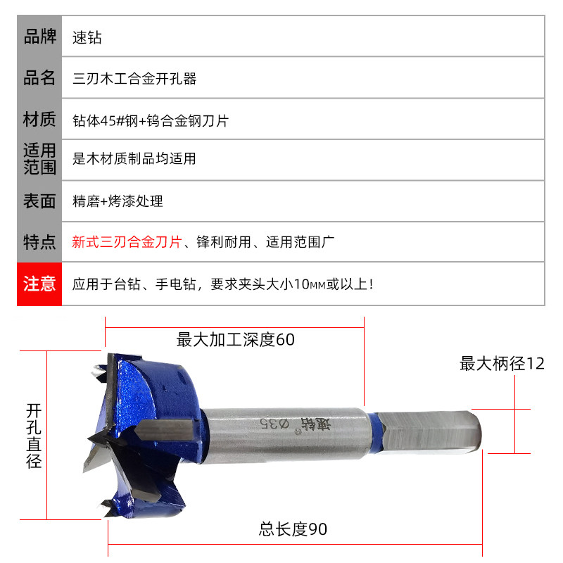 Three-edged woodworking alloy drilling machine Phi 3 5 m m (limit section) Three-edge woodworking alloy drilling machine Phi 2 5 m m three-edged woodworking alloy drilling machine Phi 2 6 m m three-edged woodworking alloy drilling machine