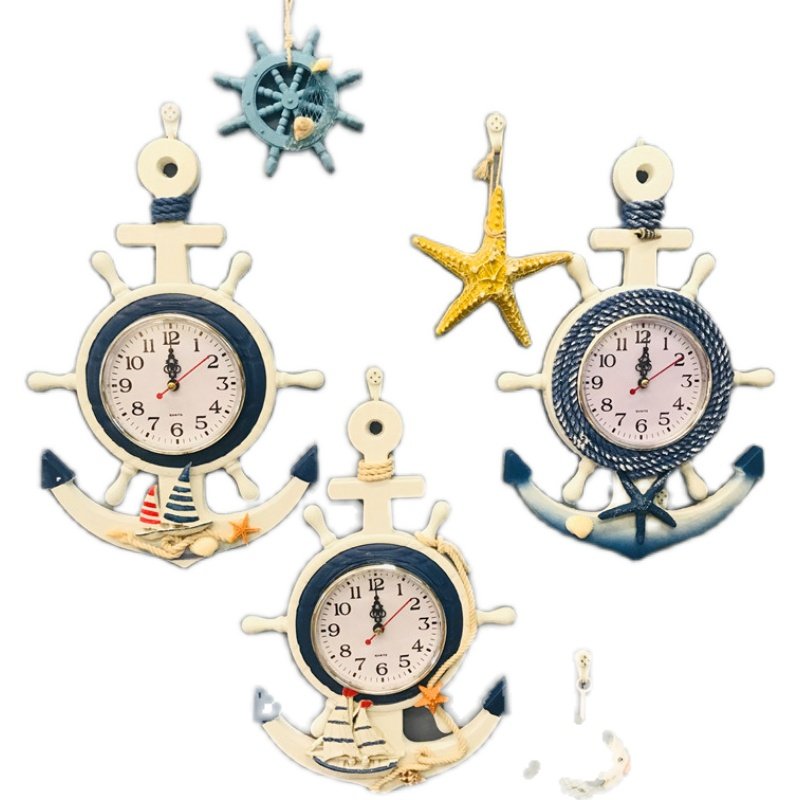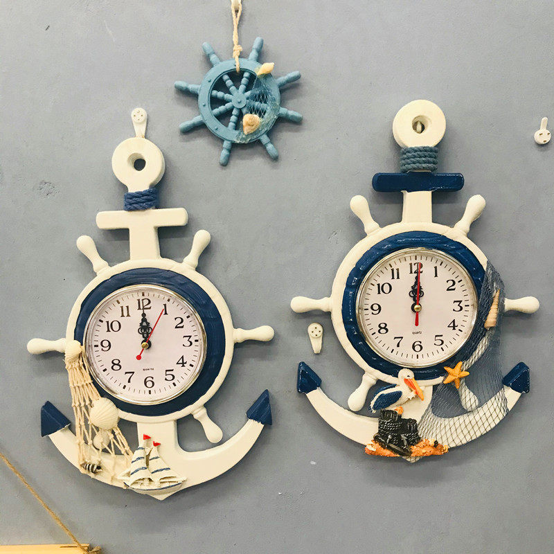 Mediterranean style creative home wall decorations Wall helmsman anchor clock Living room personality wall clock