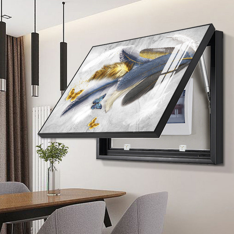 Nordic Electric Meter Case Decoration Painting Free of punching Shielded Distribution Box Total Switch Mural Light Extravagant Feather Electric Box Hang Painting