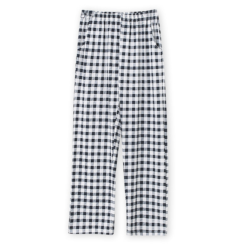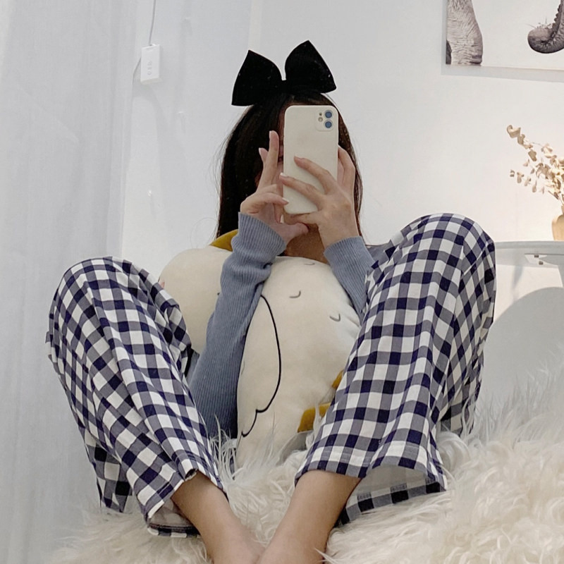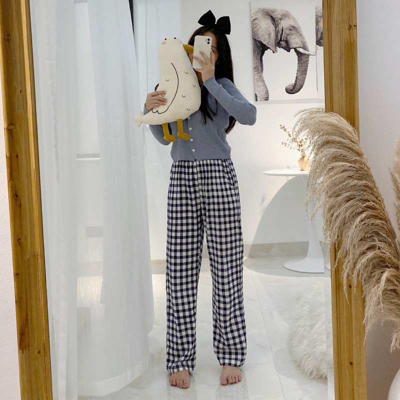 Net Red Sloth Man Pure Cotton Sleeping Pants Woman Spring Summer Thin BLUE PLAID LOOSE CAN OUTWEAR TEEN GIRL HOME PANTS LONG PANTS
