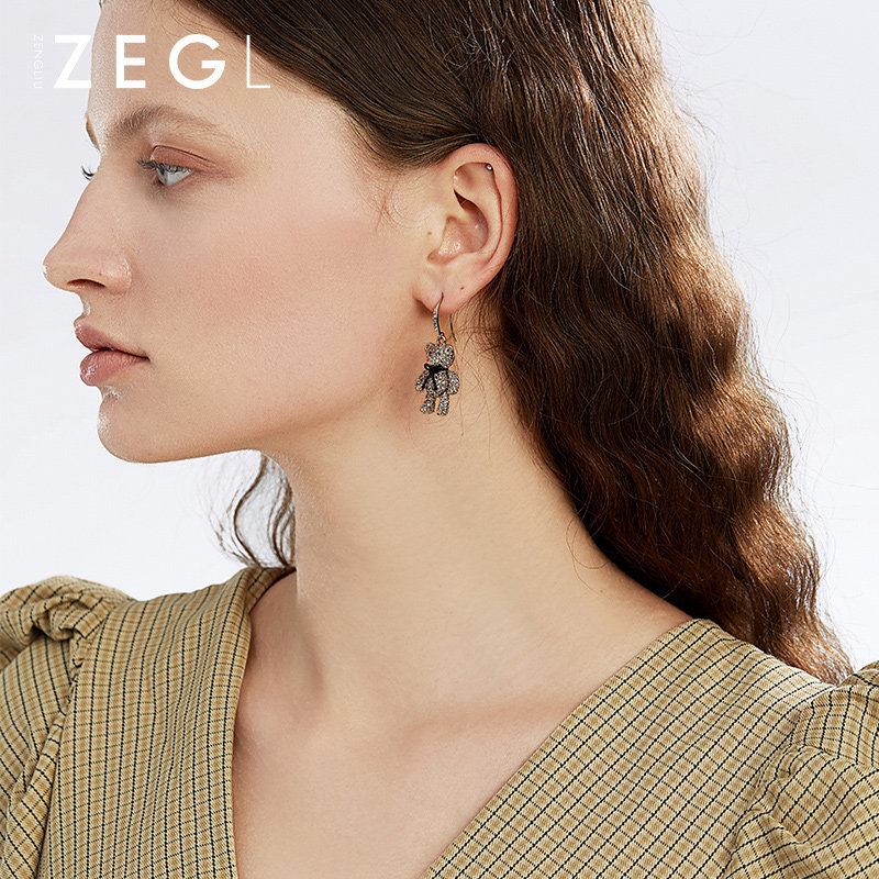 ZENGLIU bow bear earrings niche design sense cute stud earrings 2021 new trend
