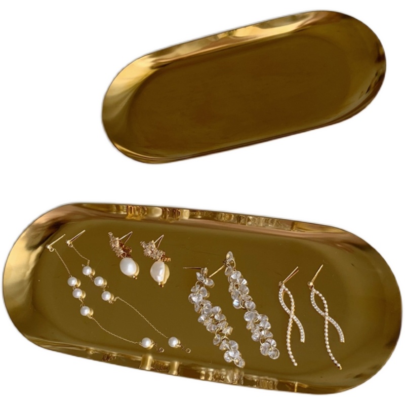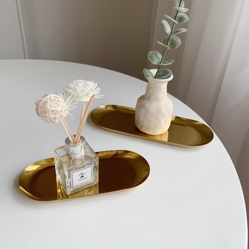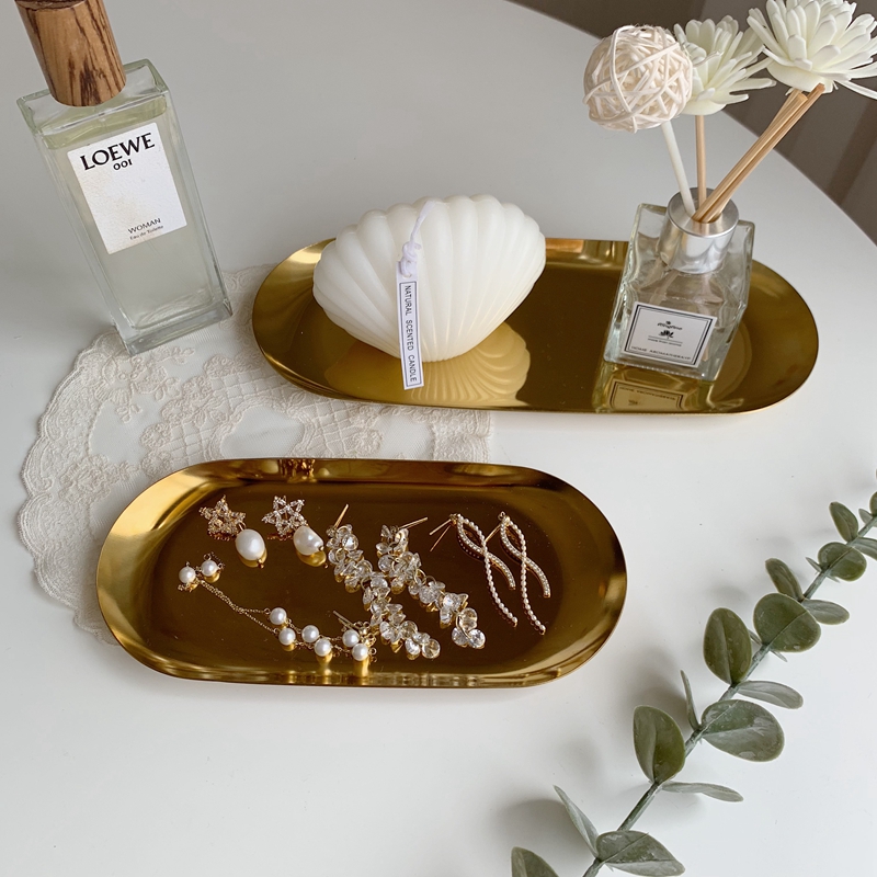 ins Wind Oval desktop storage tray metal tray cosmetics storage box jewelry tray dessert fruit tray