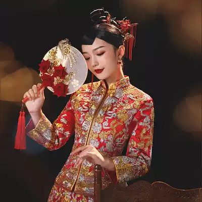 Xiuhe clothing 2021 New Big Five Fu Dragon Phoenix hanging wedding bride out of the cabinet dress Chinese wedding wedding dress show and