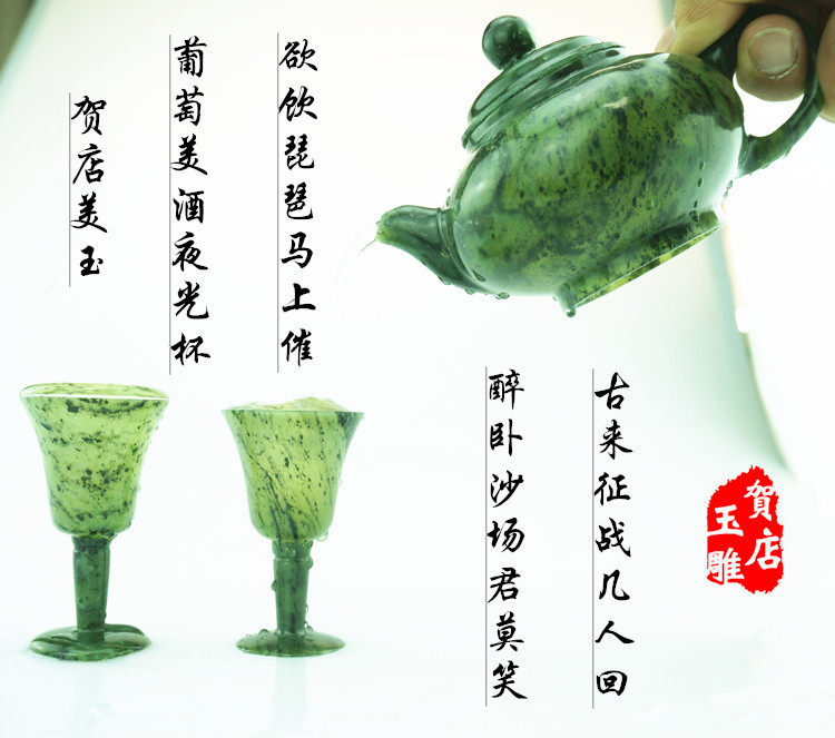 Jiuquan Luminous cup Qilian ink jade Gansu specialty Snake jade Wushan Mandarin duck jade goblet Wine glass Dunhuang