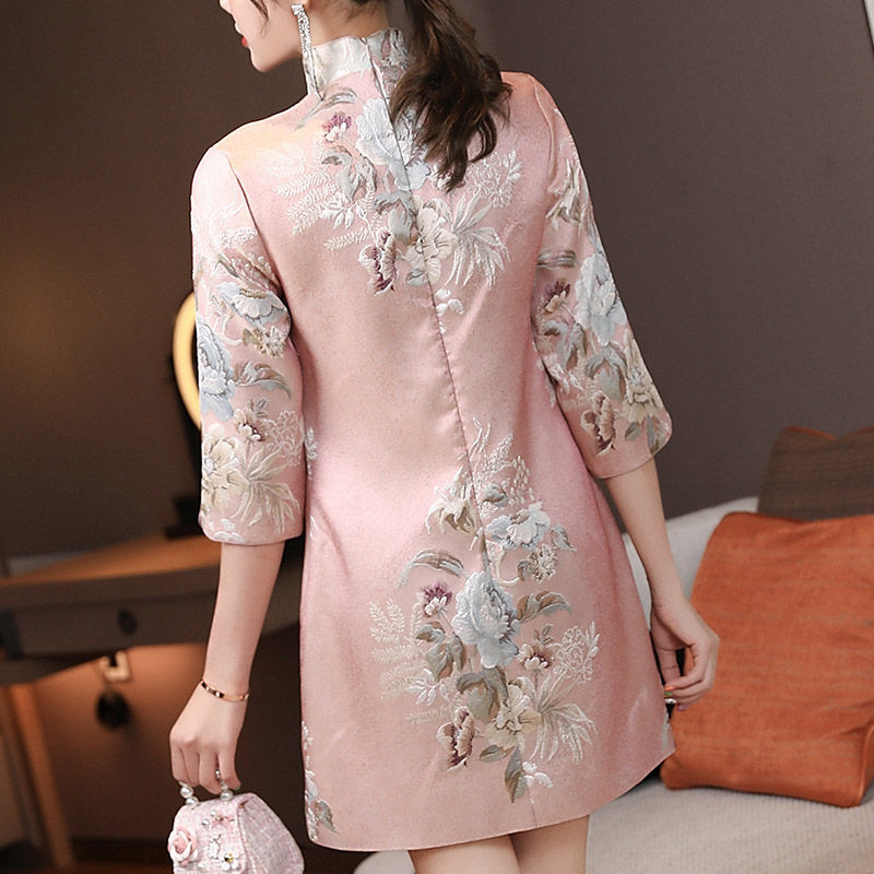 Qipao Spring Autumn New China Wind Young style Fashion Retro Temperament slim and small Submodified version of the ocean dress