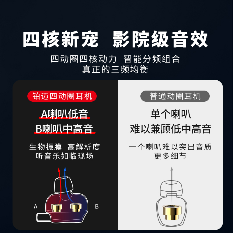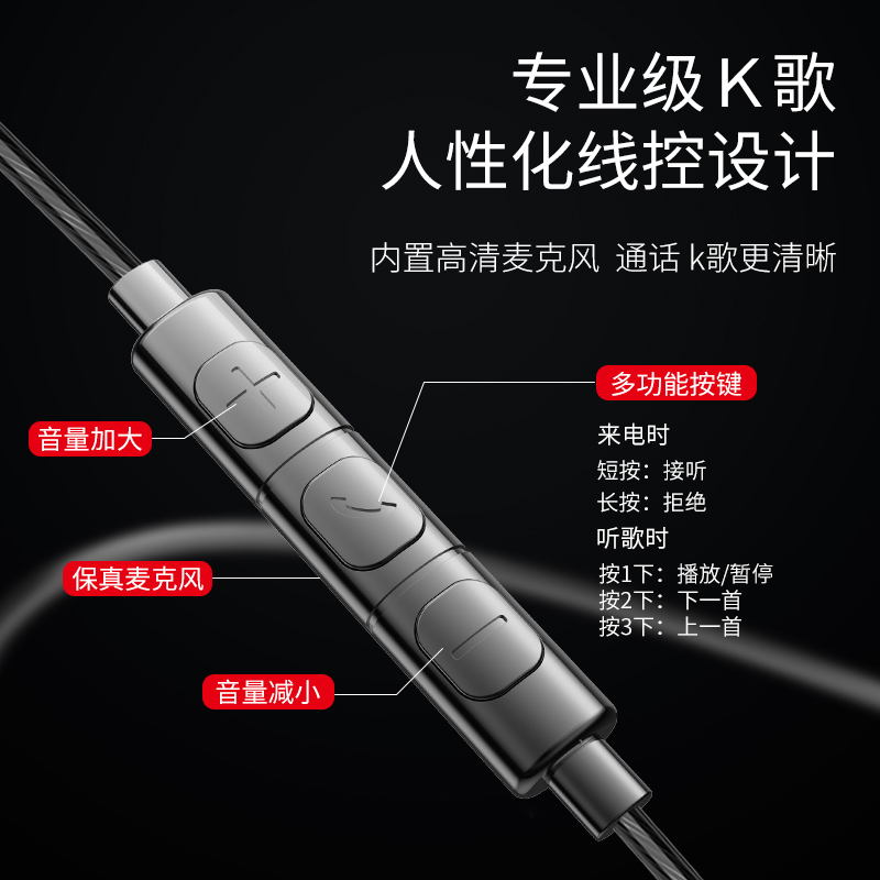 Platinum Mai headphones in-ear cable high-quality type-c mobile phone chicken game dedicated desktop computer with wheat K song monitoring is suitable for Huawei black shark oppo Xiaomi vivo universal