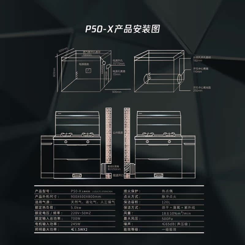 Worpth P50X integrated stove integrated domestic kitchen steam oven integrated smoking machine ultraviolet disinfection cabinet Flame Foci