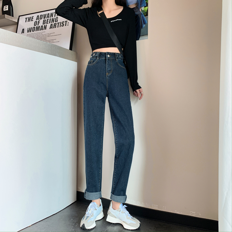 Miss Miss Lady's Pawn High Waist Display Slim Overfire Black Straight Drum Jeans Loose Pants Gentle Tease Closet