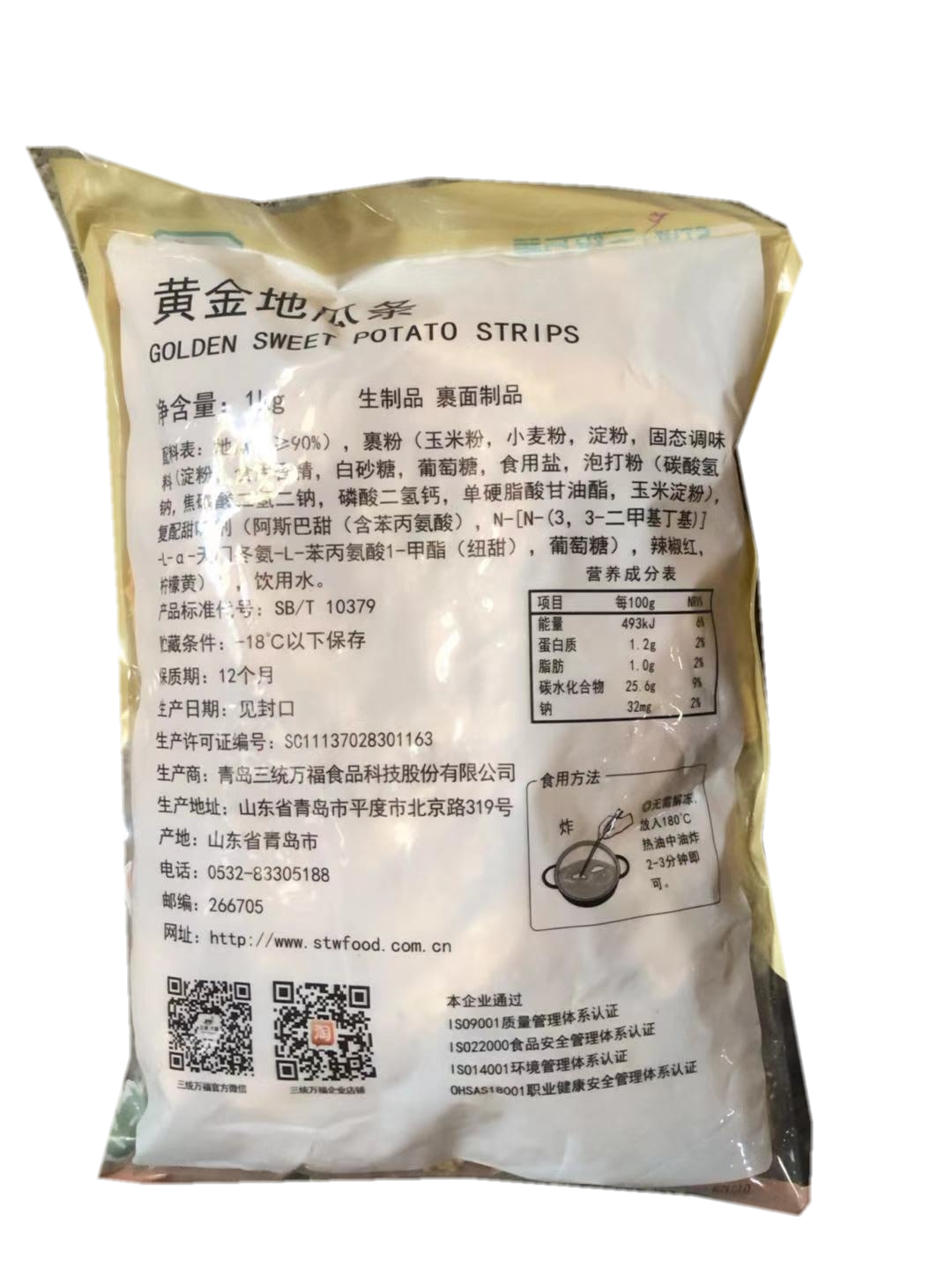 Santong Wanfu Golden Sweet Potato Strips 1kg Ganmei Sweet Potato Strips Haoda Chicken Chop Frozen Fried Semi-finished Snacks