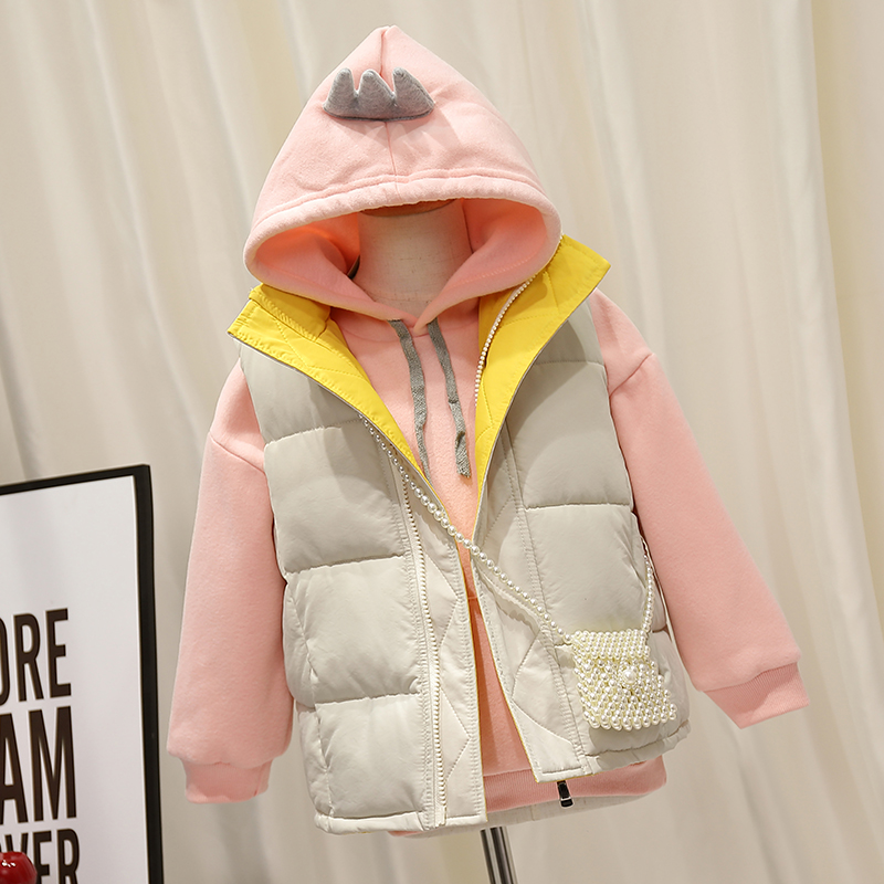 Girl Baby Vest Kan Shoulder External Wearing Thickened Waistcoat Jacket 2021 Autumn Winter Foreign Pie children's down cotton waistcoat