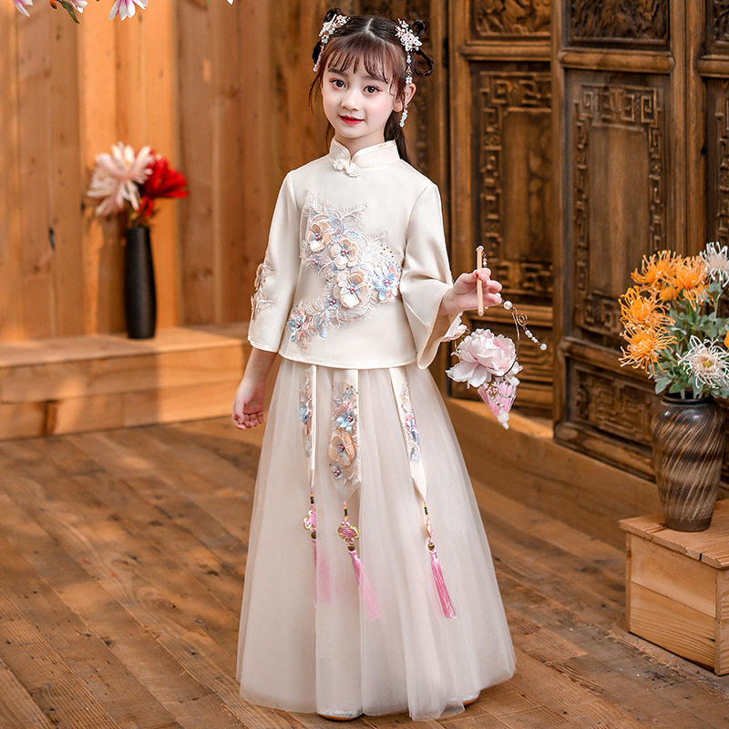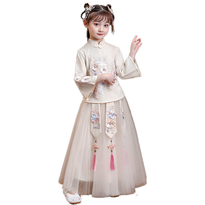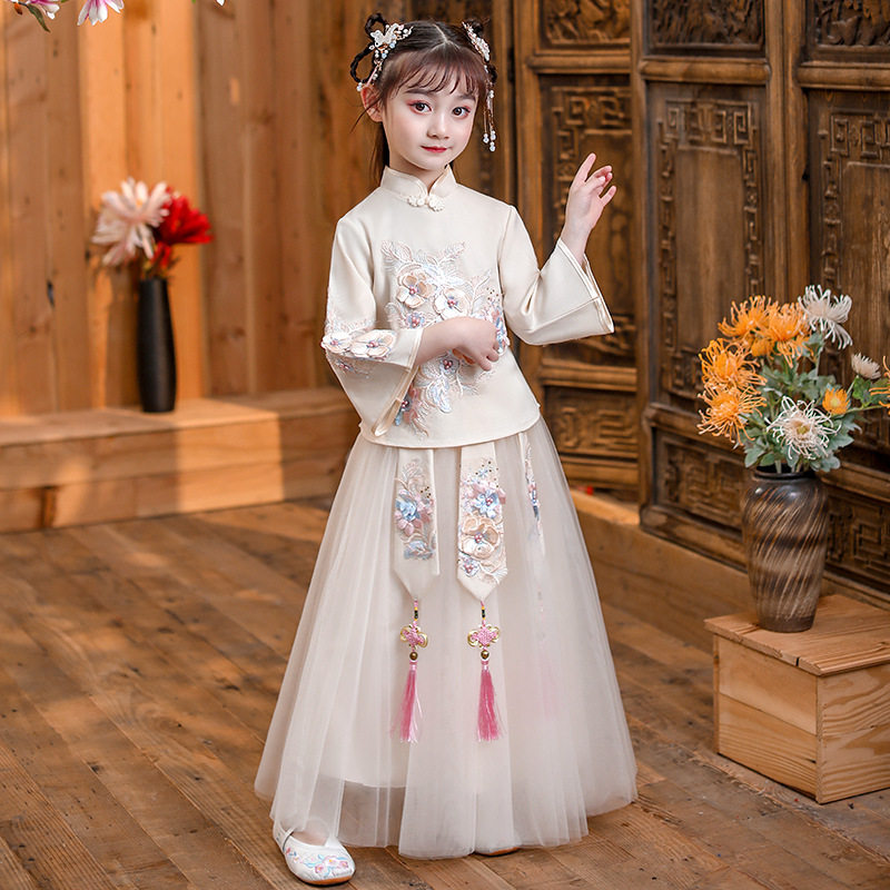 Girls Hanfu Spring Dress 2022 New Tang Dress Medium and Old Children Spring and Autumn Long Sleeve Chinese Style Super Immortal Cheongsam Skirt