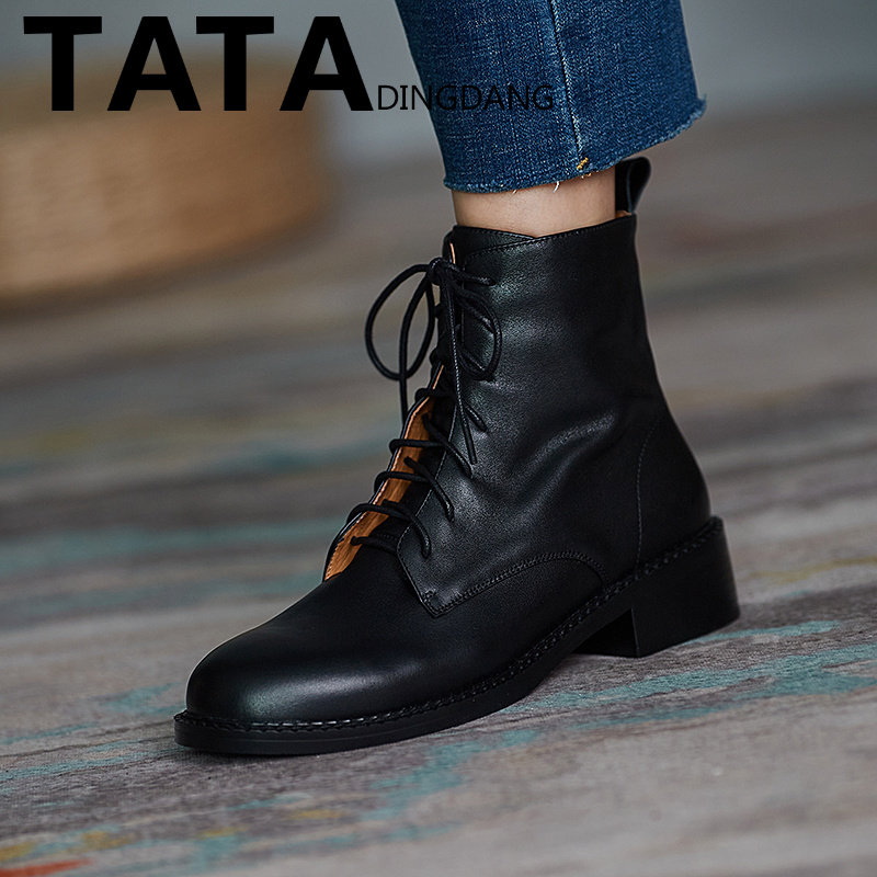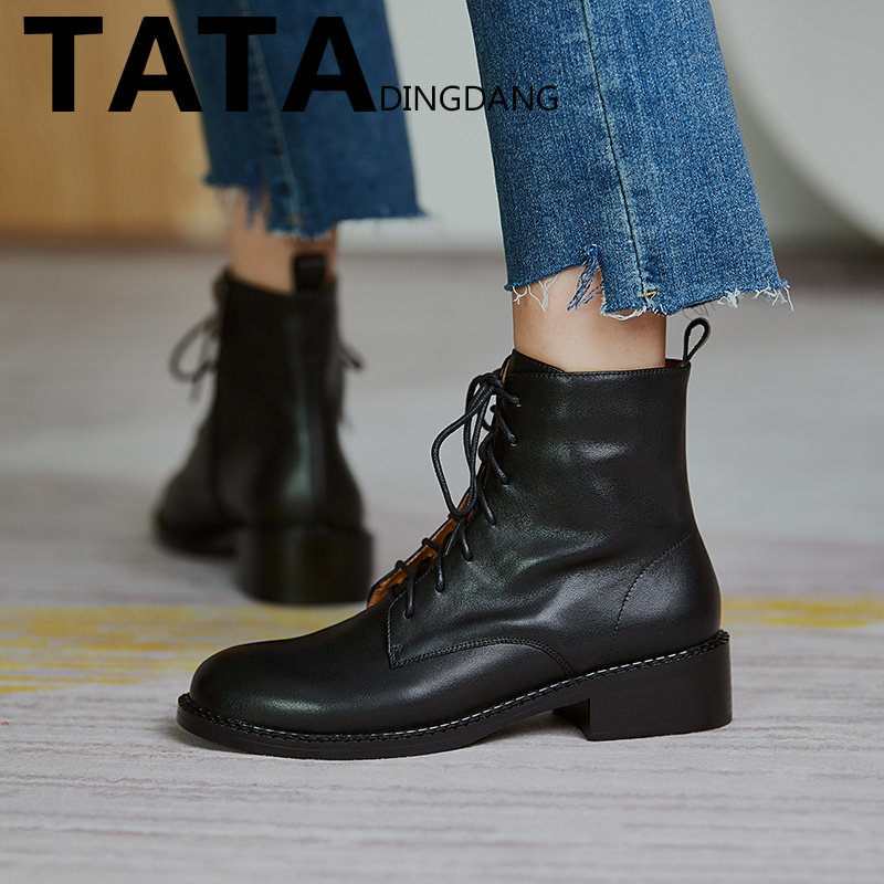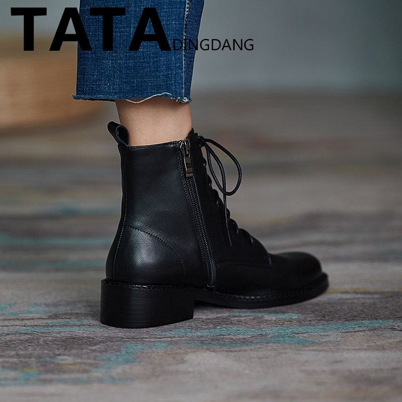 Tata Dingdang Martin boots rough heels riding boots English wind short boots she female shoes plus thin boots