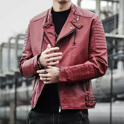 Leather men's trend Korean version of handsome simulation leather jacket stand collar oblique zipper slim-fit riding clothing motorcycle jacket spring and autumn