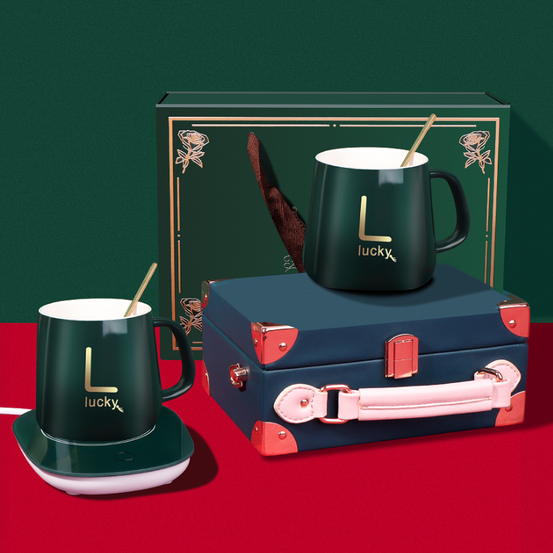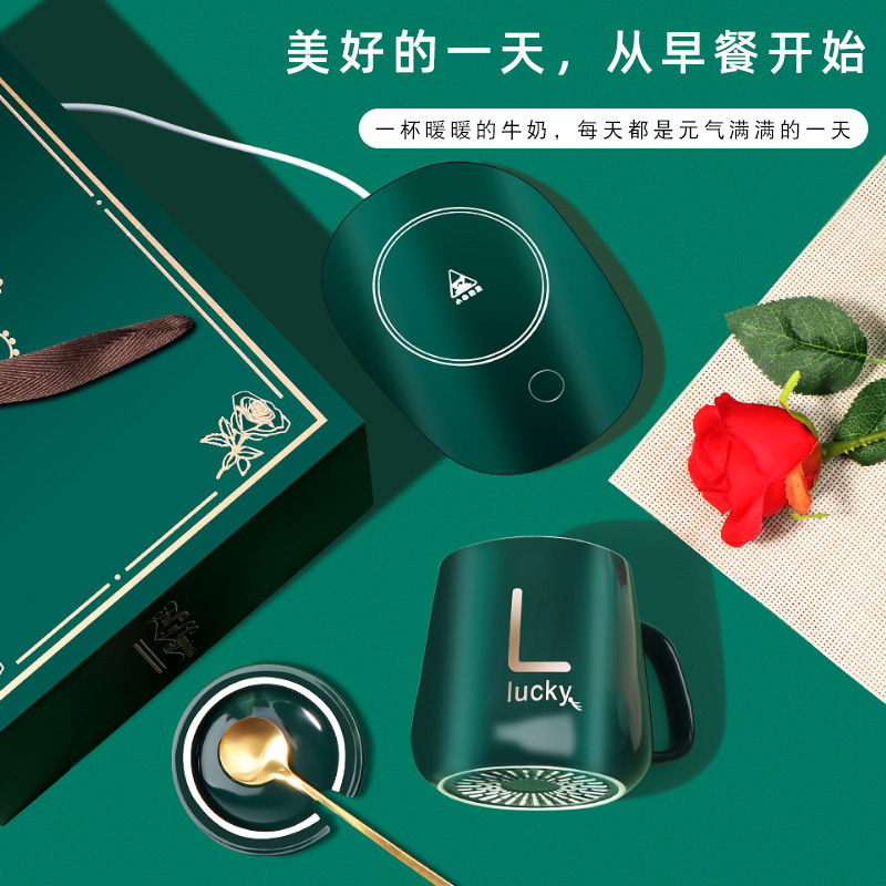 Warm heart letter cup thermostat plate Exquisite packaging Pink goddess warm cup thermostat plate