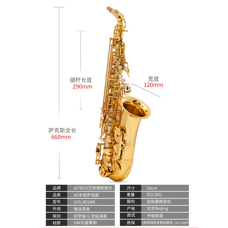 AITBOS Aitbos GYS-801MR new alto saxophone electrophoretic paint gold beginner grade test