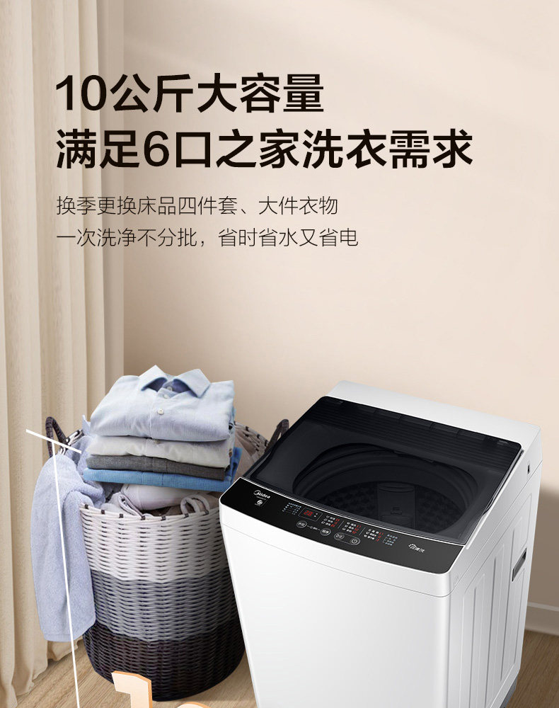 Midea washing machine 10KG kg large capacity household wave wheel automatic free-cleaning elution integrated MB100ECO