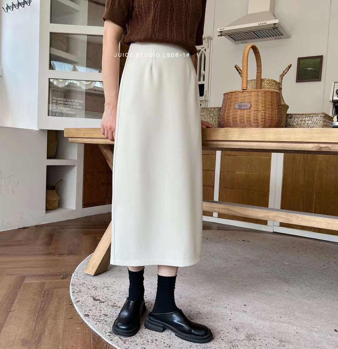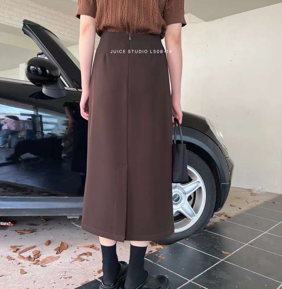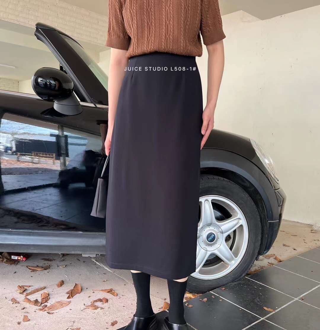 juice juice 508 autumn and winter suit drooping skirt women's split high waist mid-length version slim bag hip skirt A skirt