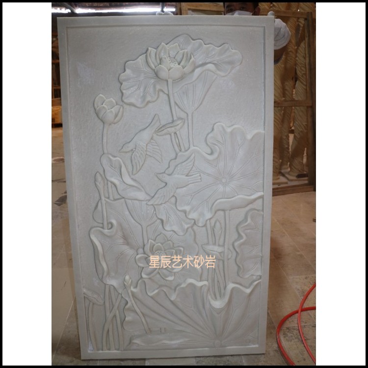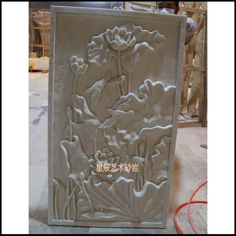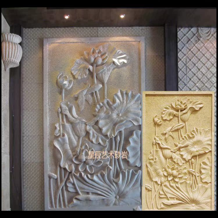 Sandstone relief lotus Tuo European-style background wall room inside and outside Villa Hotel Furniture Fiberglass Imitation Bronze Sculpture