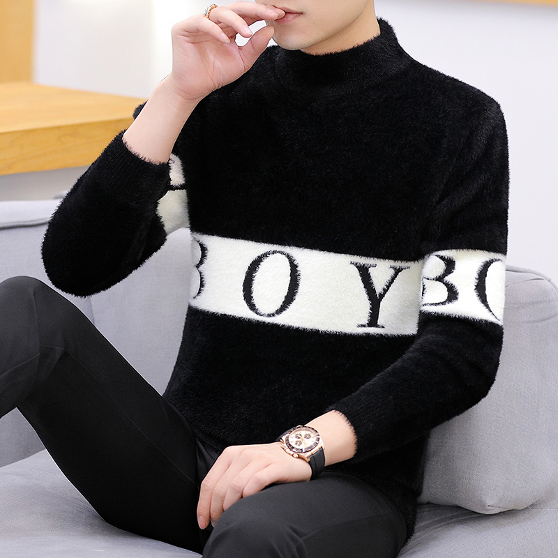 Autumn and winter half turtleneck mink fleece sweater men's bottoming shirt teenager student woolen sweater trend autumn top