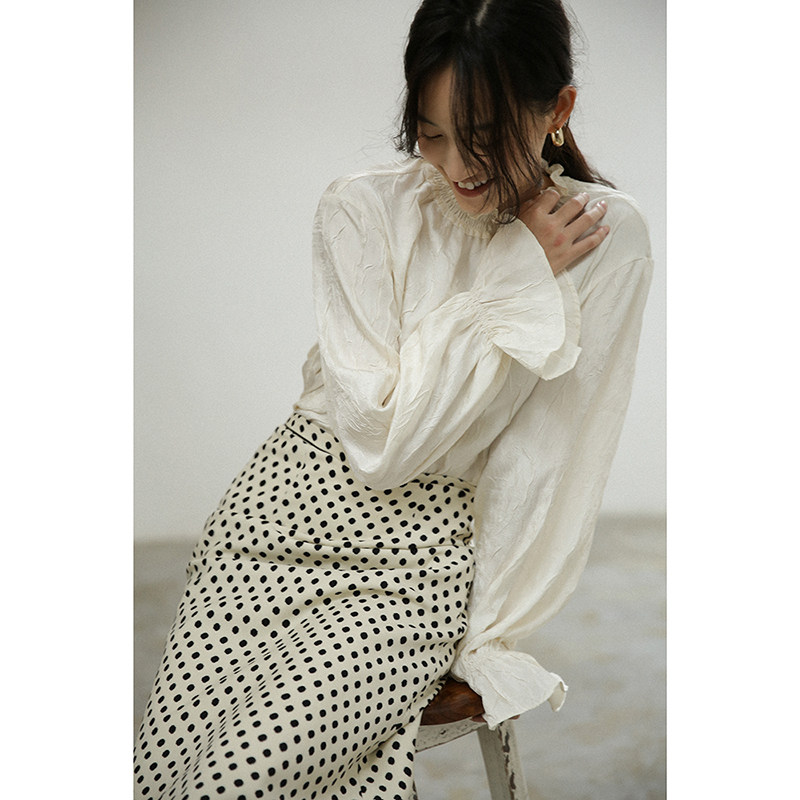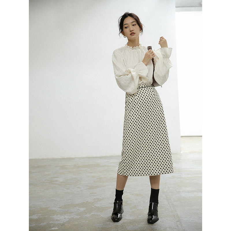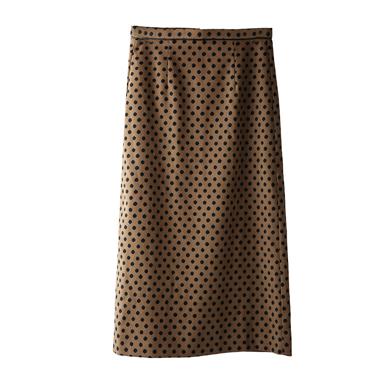 Ou Ke Rui Winter retro single product ~ suede polka dot split skirt high waist one-step a-line skirt mid-length female