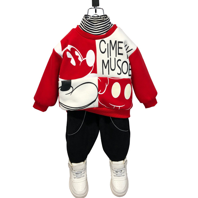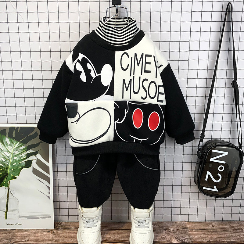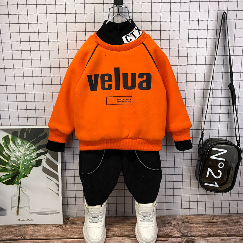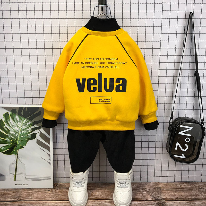 Children's clothing boys autumn and winter suit plus velvet thickened New Year handsome sweatshirt foreign atmosphere children's baby tide fashion Spring Festival
