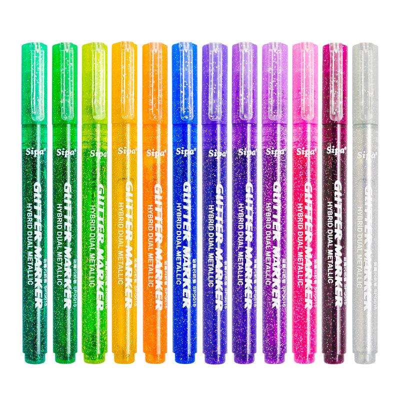 Zhongbai glitter pen 12 color set DIY painting doodle pen Douyin same style girl quicksand students color flashing chalk children students cartoon pearling pen fluorescent glitter powder glitter coloring pen