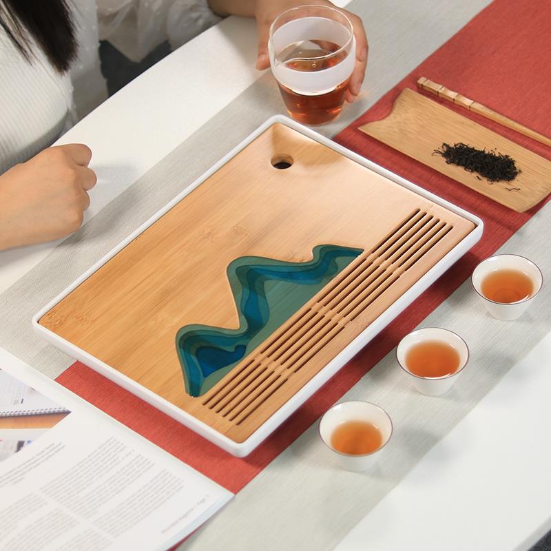 Bamboo tea tray Home Mini small dry foam tray One pair with tea set day Easy embedded water storage tea table