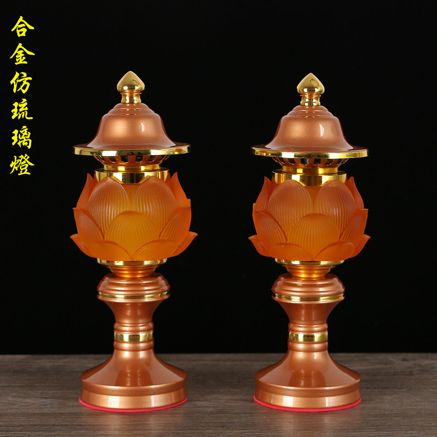Home Buddhist hall Guanyin Changming lamp colorful lotus lamp plug-in for the Buddha god table lamp LED Buddha lamp a pair of Buddha offering lamps
