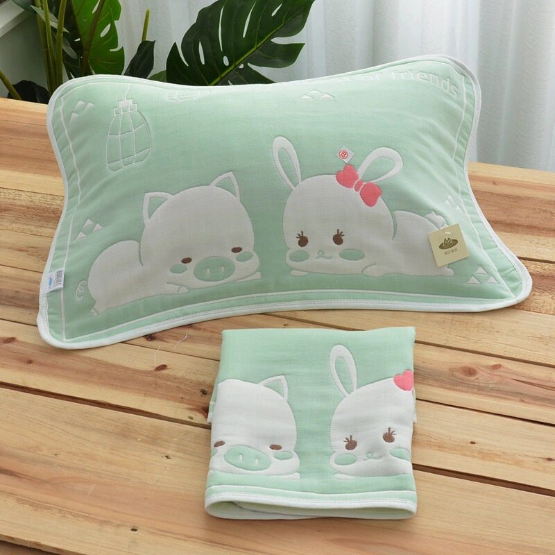 Children's pillow towel a pair of cotton pure cotton cartoon pillow towel 40*60 baby sweat-absorbing breathable baby 35*55cm