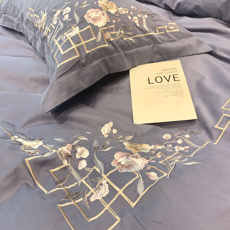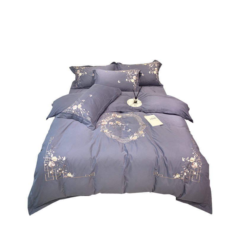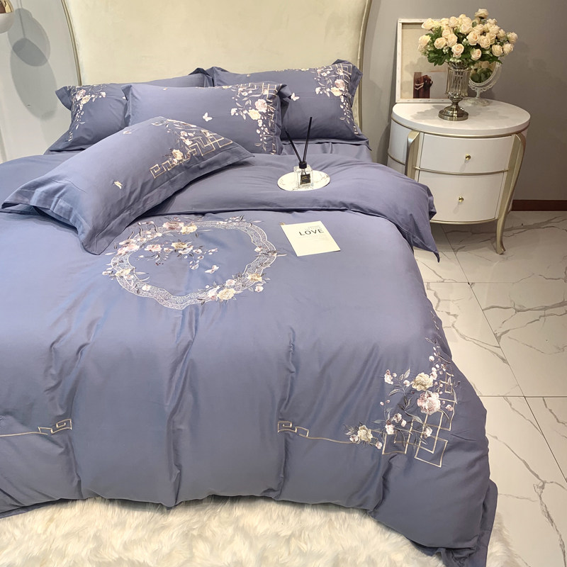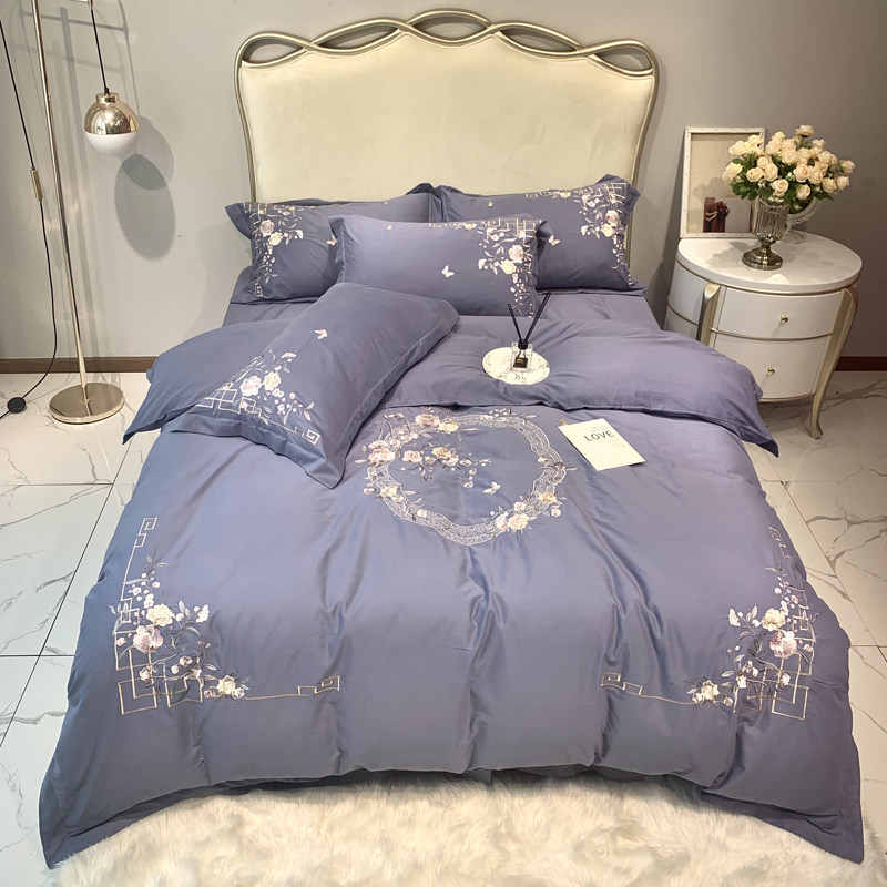 Autumn and winter warm and thick quilt cover pure cotton 60 brushed four-piece set high-end embroidery double 1 8 meters bedding