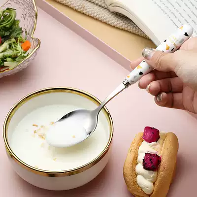 304 stainless steel spoon household creative cute long handle coffee spoon Children's baby eating spoon Western fork j