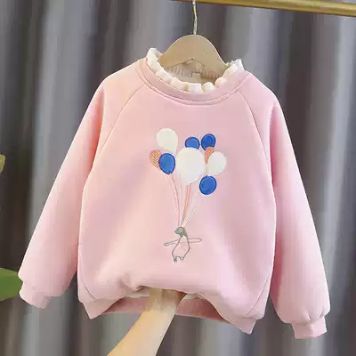 Girls thick T-shirt spring and autumn 2021 new Korean version of the thin velvet Ocean school children's net red big girl girl in the big boy top tide