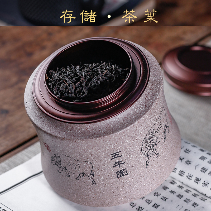 Hearing Pot Home With Sealed Jar Purple Sand Small Tea Leaf Jars Storage Tea Box Black Tea Pu'er Tin Jar Ceramic Loose Tea Pot Direct