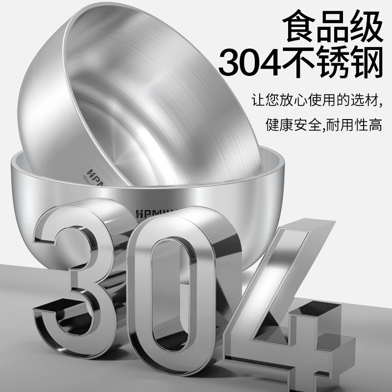 Thickened food grade 304 stainless steel basin household kitchen bowl male egg basin rubbing and basin cold noodle salad bowl large