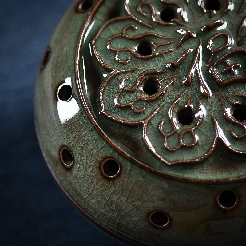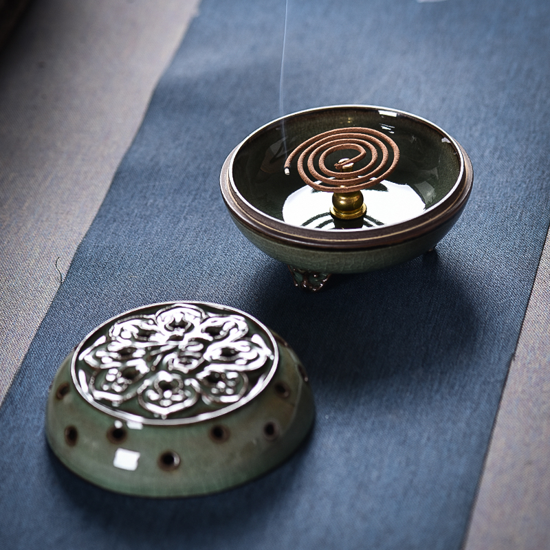 Longquan pure hand-carved Chinese aromatherapy furnace ceramic simple Zen iron body incense furnace tower incense plate incense incense incense stick